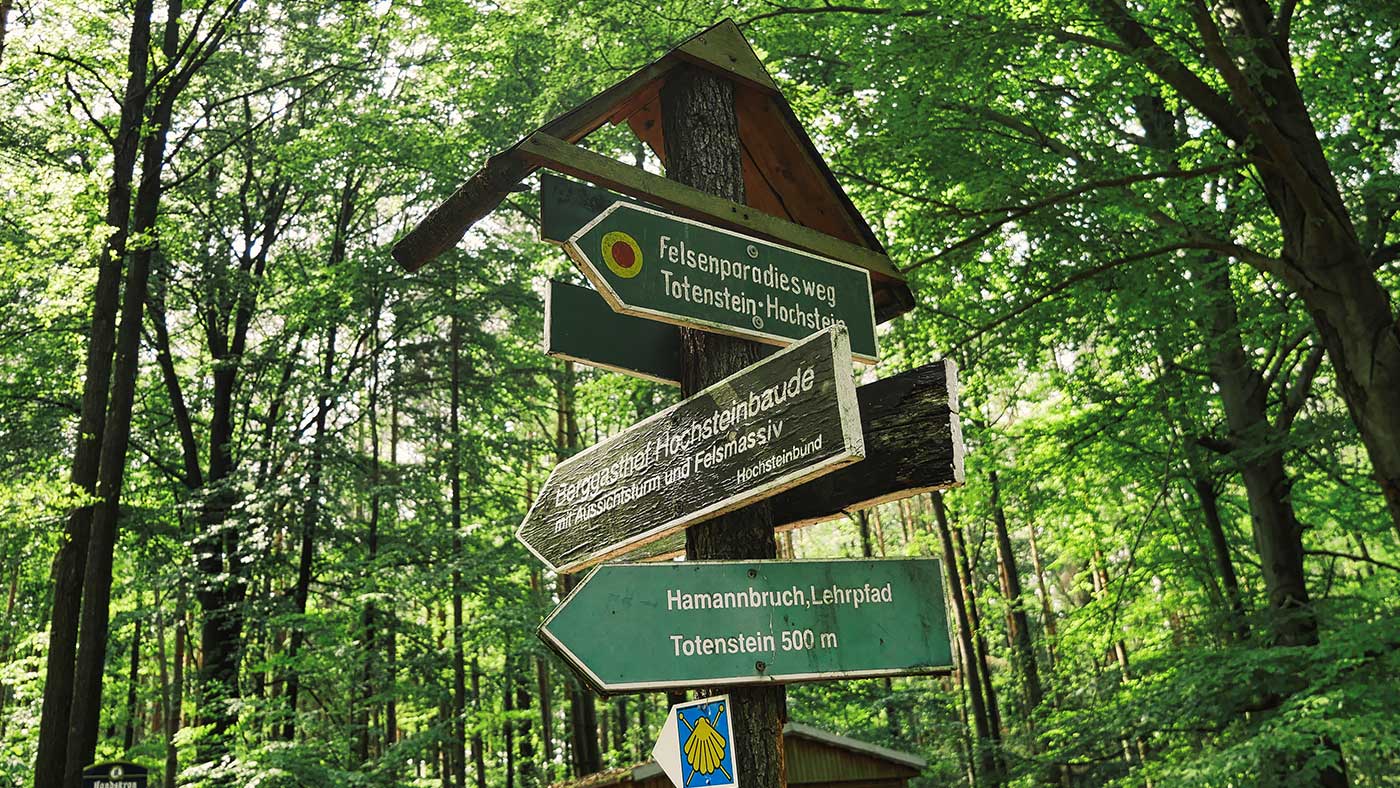 Eine beliebte Route führt vom Firstenstein über den Totenstein zum Hochstein, wo sich ein Aussichtsturm befindet. Die Strecke ist ca. 5,4 km lang und eignet sich auch für Familien.